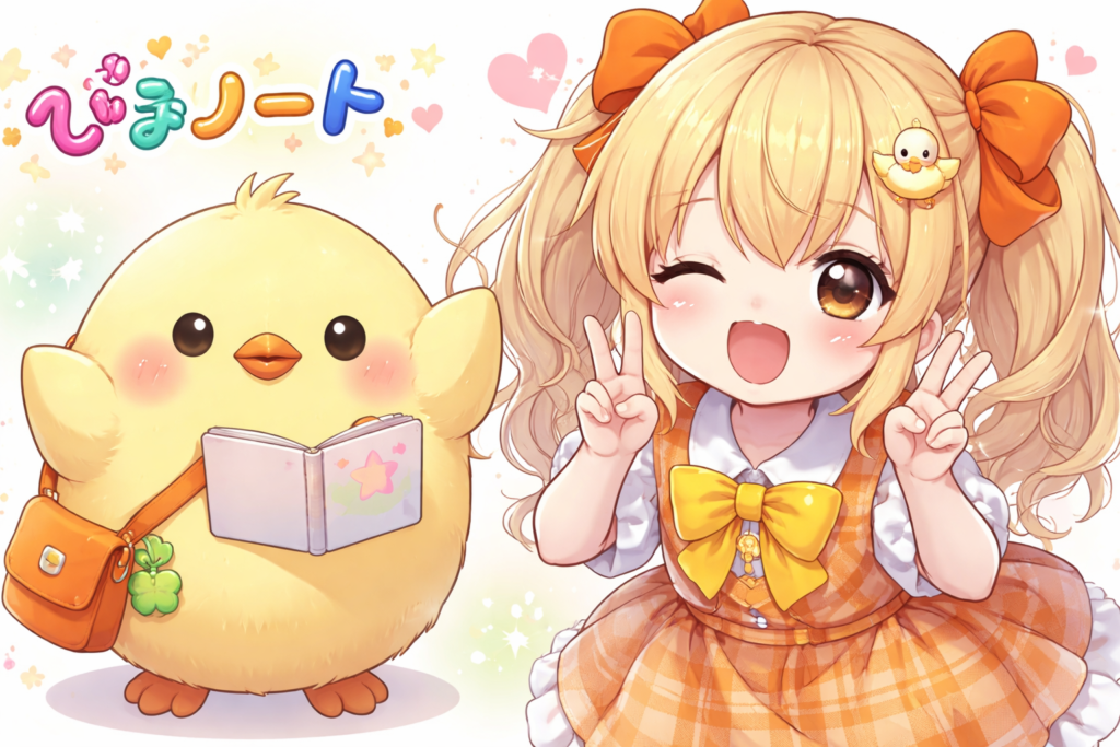 例えば、「ぴよノートとあどが並んでいるポーズの画像を作って。」と言ったところ、ぴよノートの隣にあどと思われる人間の女の子が並んでいました(笑)